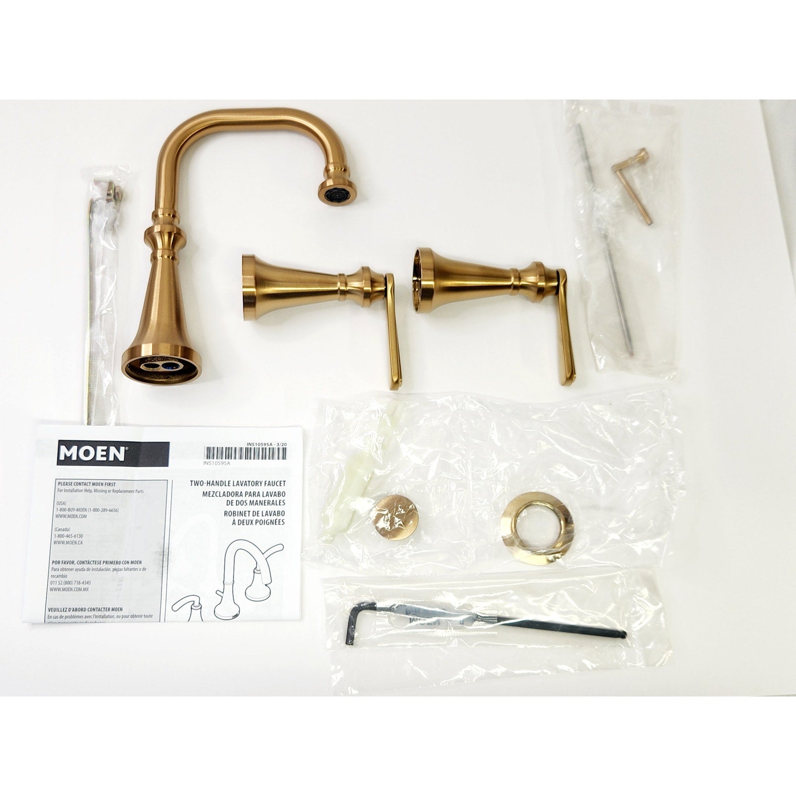 Moen TS44102BG Widespread Bathroom Faucet - Pop-Up Drain Assembly - Brushed Gold