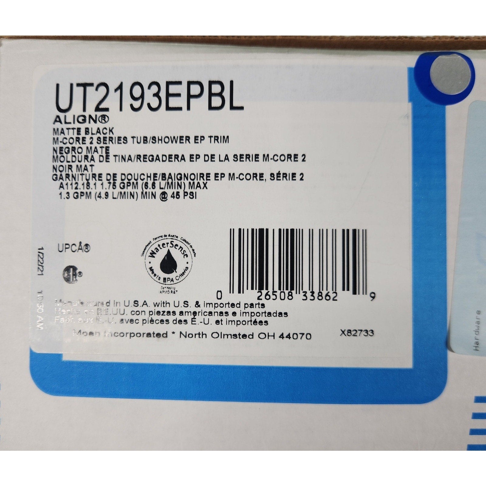 Moen UT2193EPBL Align M-CORE 2-Series Tub/Shower Trim Kit - Matte Black