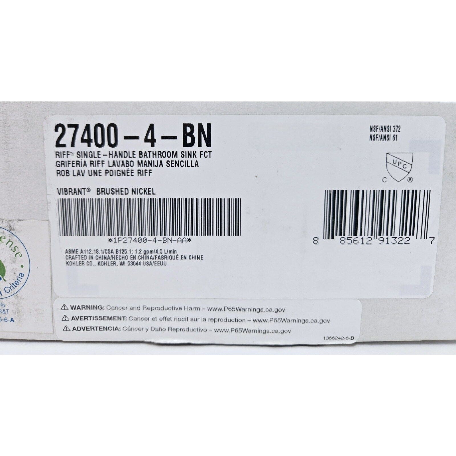 Kohler 27400-4-BN Riff 1.2 GPM Single Hole Bathroom Faucet - Brushed Nickel
