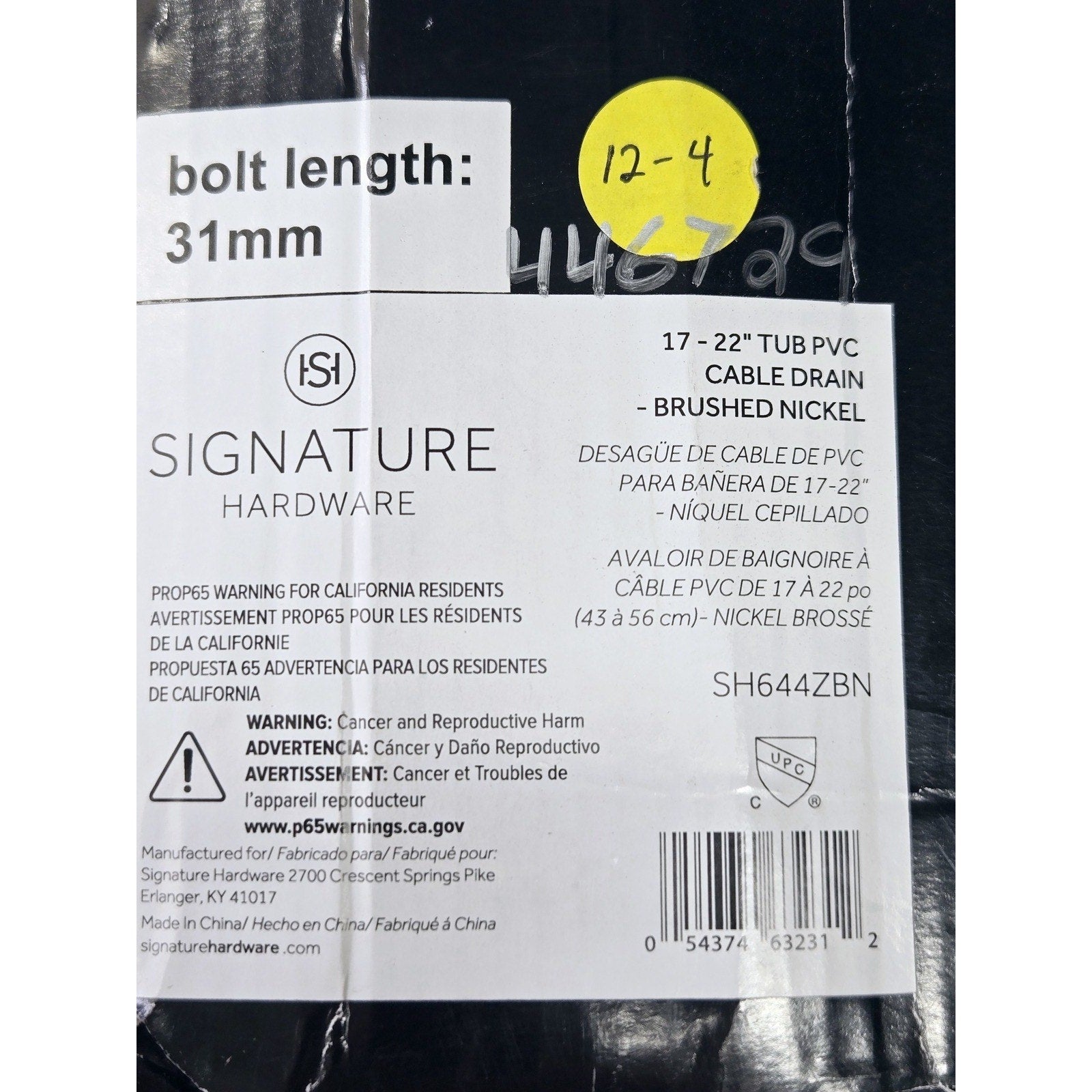Signature Hardware 446729 PVC Cable Drain & Overflow - Brushed Nickel