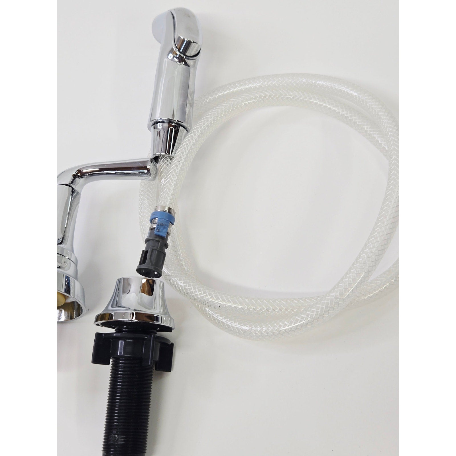 2 handle faucet: traditional dual-handle design with separate hot and cold water handles for precise adjustment with soap dispenser and deck plate