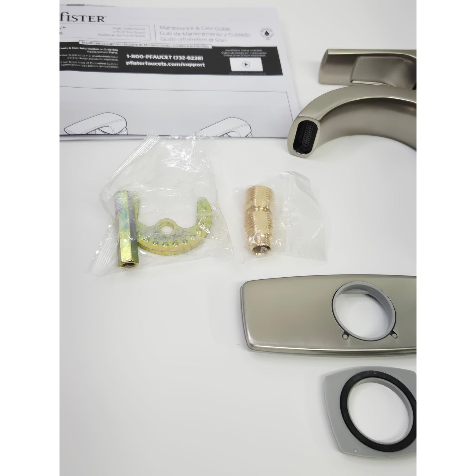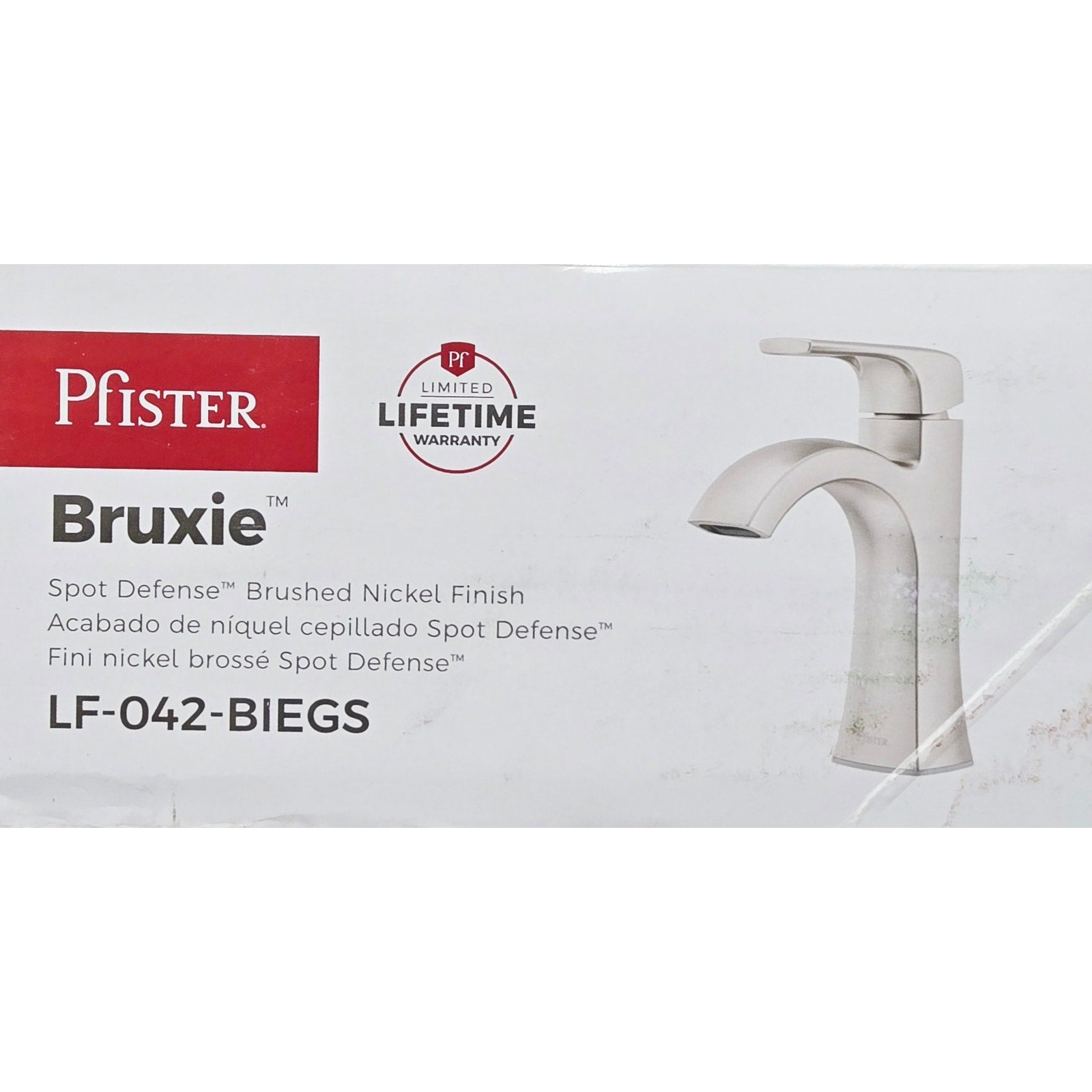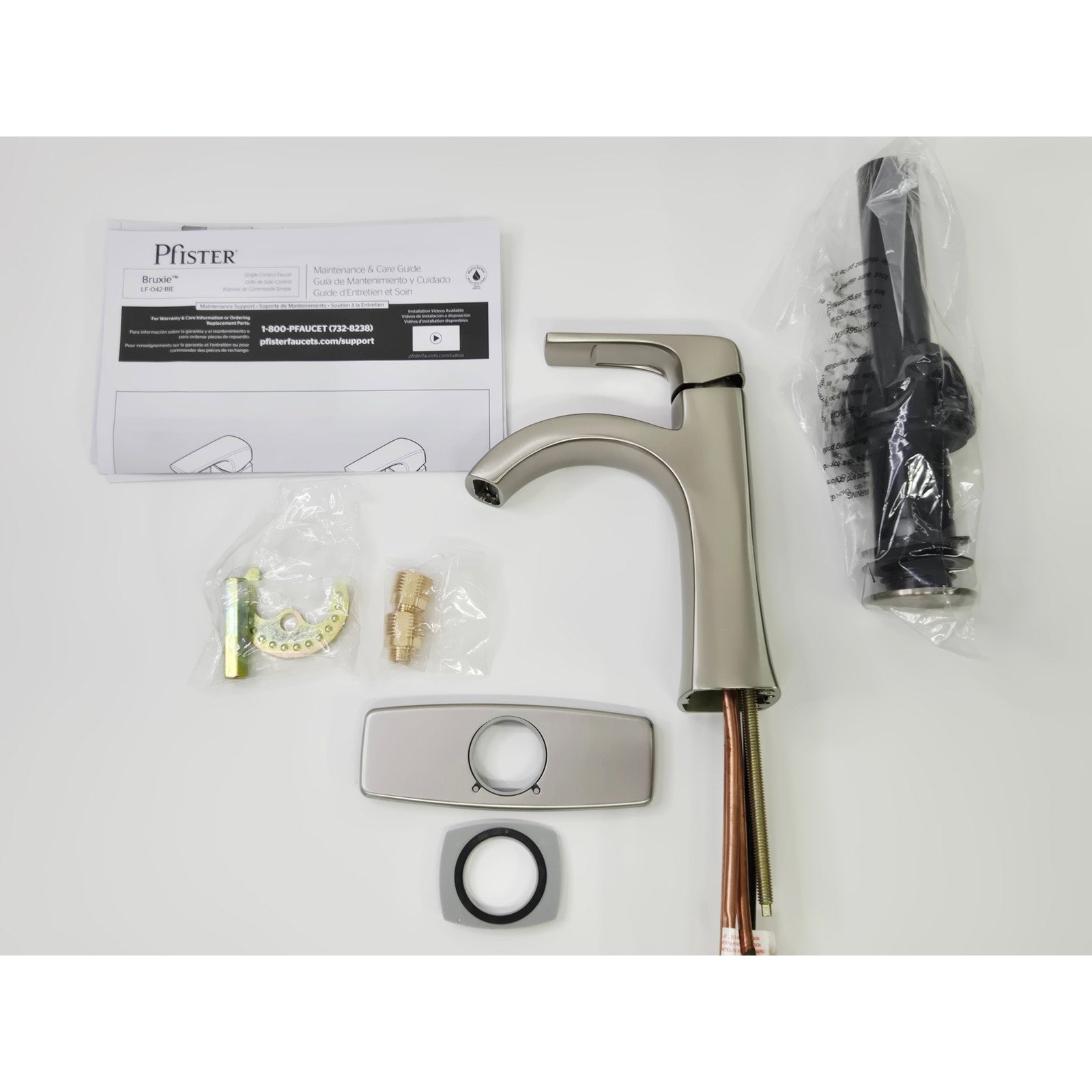 Pfister LF-042-BIEGS Bruxie Single-Handle Single-Hole Bathroom Faucet with Deckplate and Drain Kit Included - Spot Defense Brushed Nickel