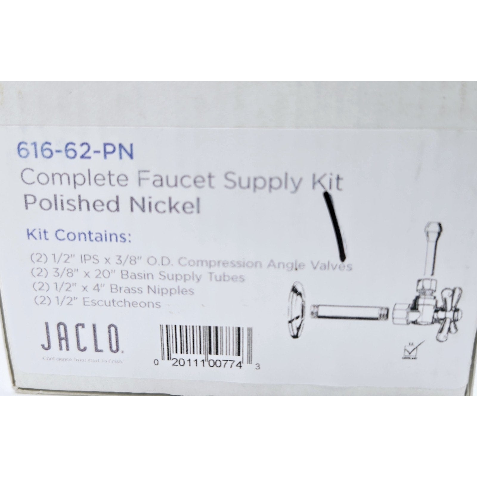 Jaclo 616-62-PN Quarter Turn Angle Pattern with Cross Handle - Polished Nickel