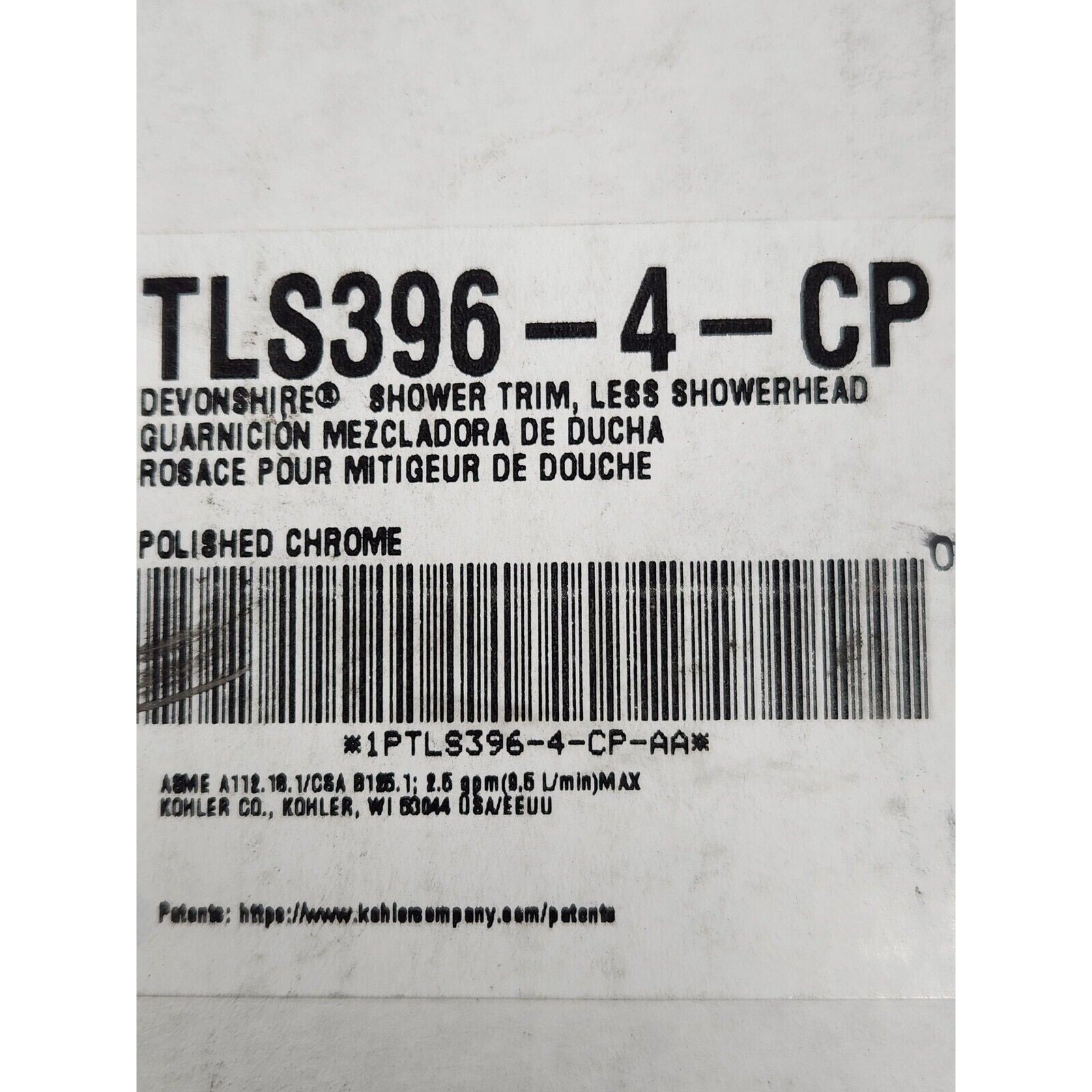 Kohler TLS396-4-CP Devonshire Rite-Temp Shower Trim Kit - Polished Chrome