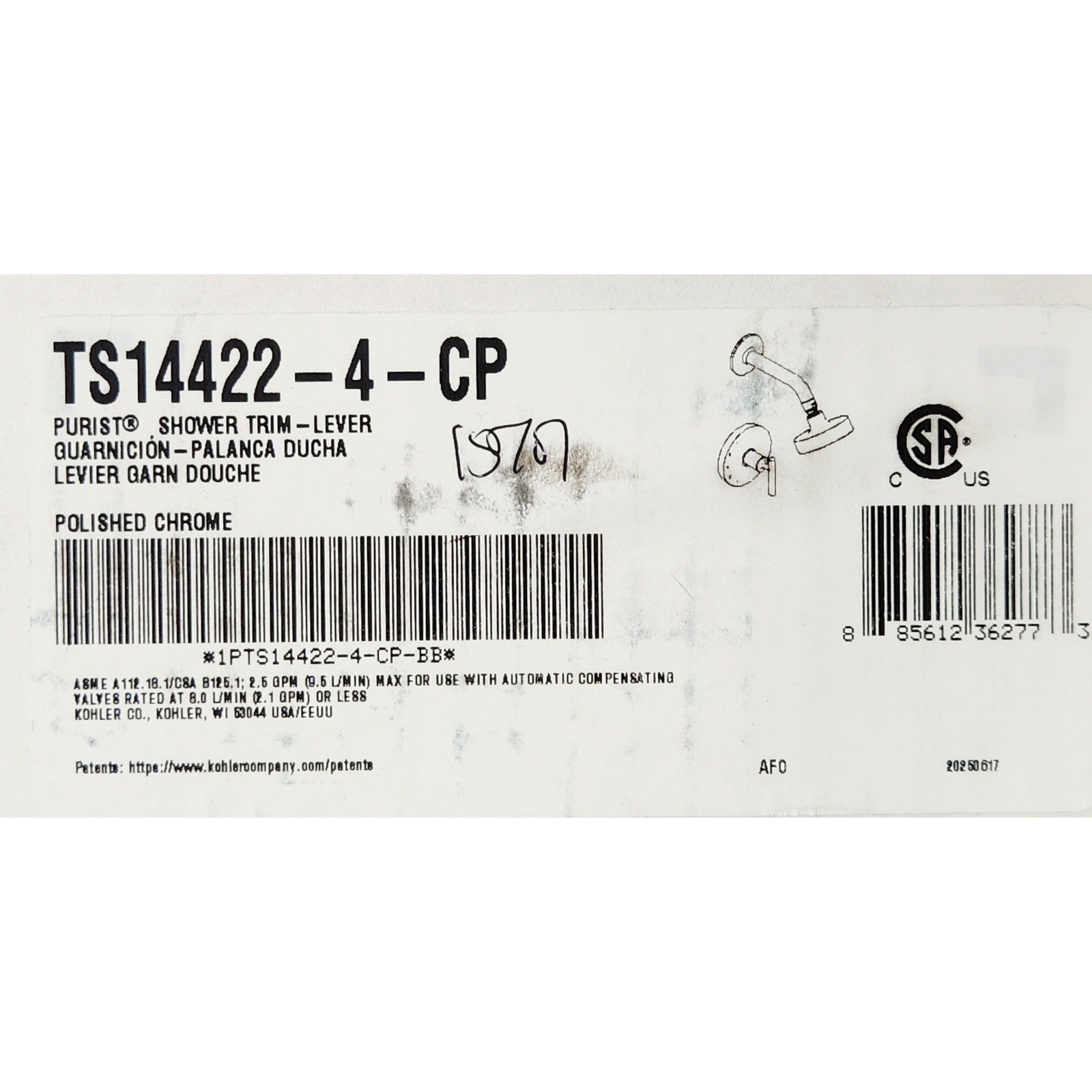 Kohler TS14422-4-CP Rite-Temp Shower Trim Kit with Lever Handle -Polished Chrome