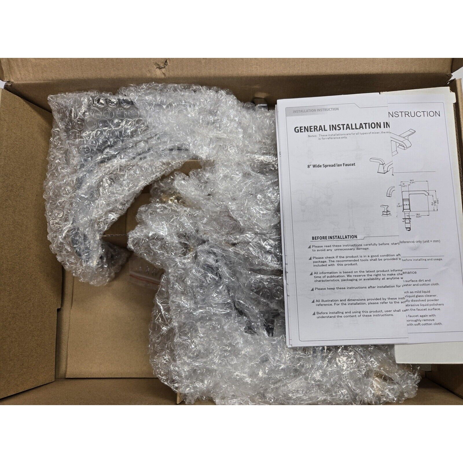 Our items have never been installed and are sold as open-box products, unless otherwise noted. While the boxes may have slight damage, as shown in the pictures, the items themselves are carefully inspected to ensure they are not damaged or missing any pieces.
