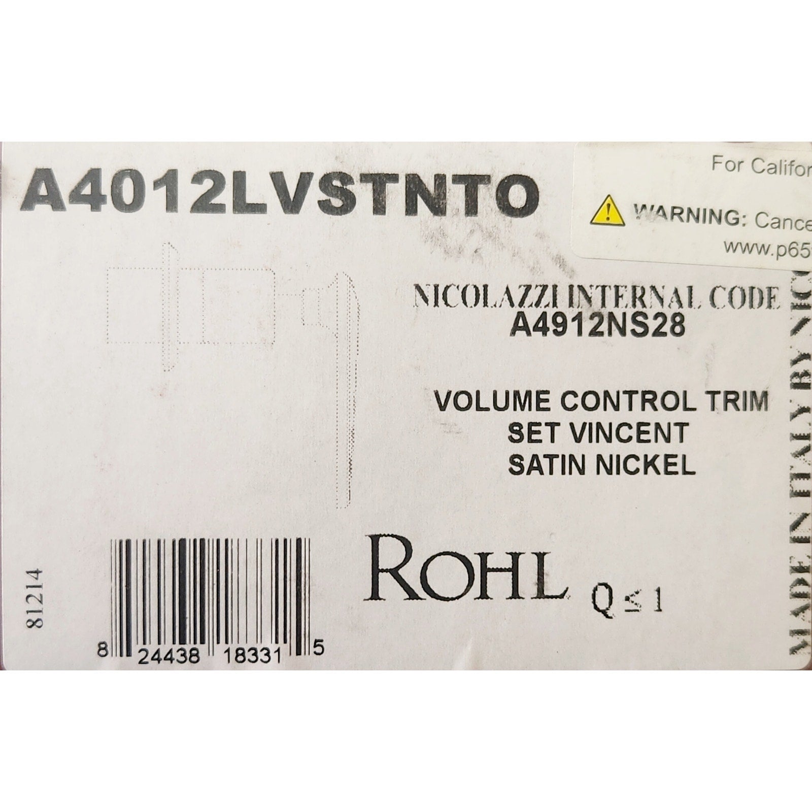 Rohl A4012LVSTNTO Vincent Trim For Volume Control & Diverter - Satin Nickel READ