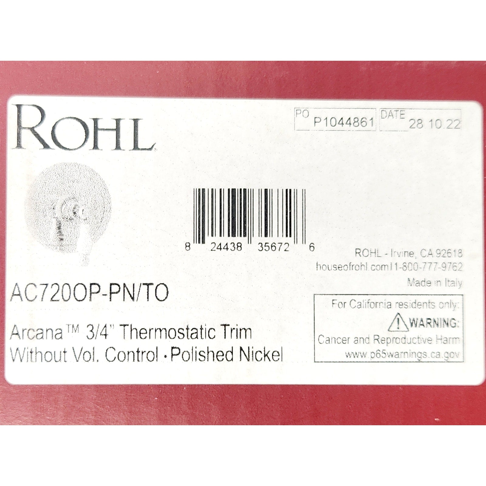 Rohl AC720OP-PN/TO Arcana Thermostatic Valve Trim Less Rough In -Polished Nickel