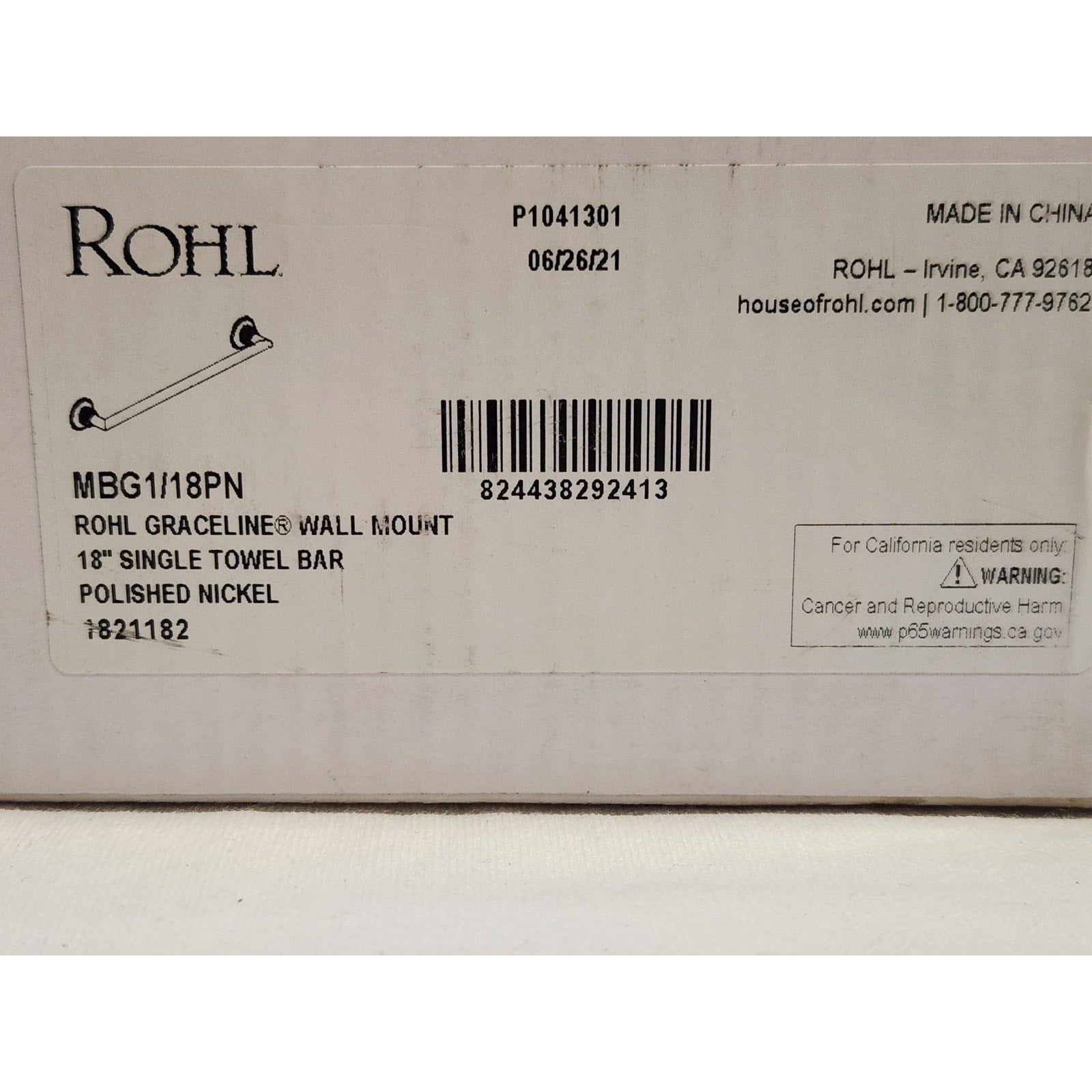 Rohl MBG1/18PN Graceline Wall Mount 18" Single Towel Bar - Polished Nickel