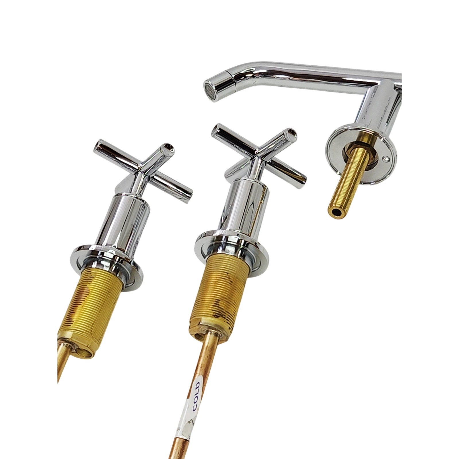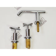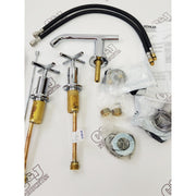 Dual cross handles control the flow and temperature of water