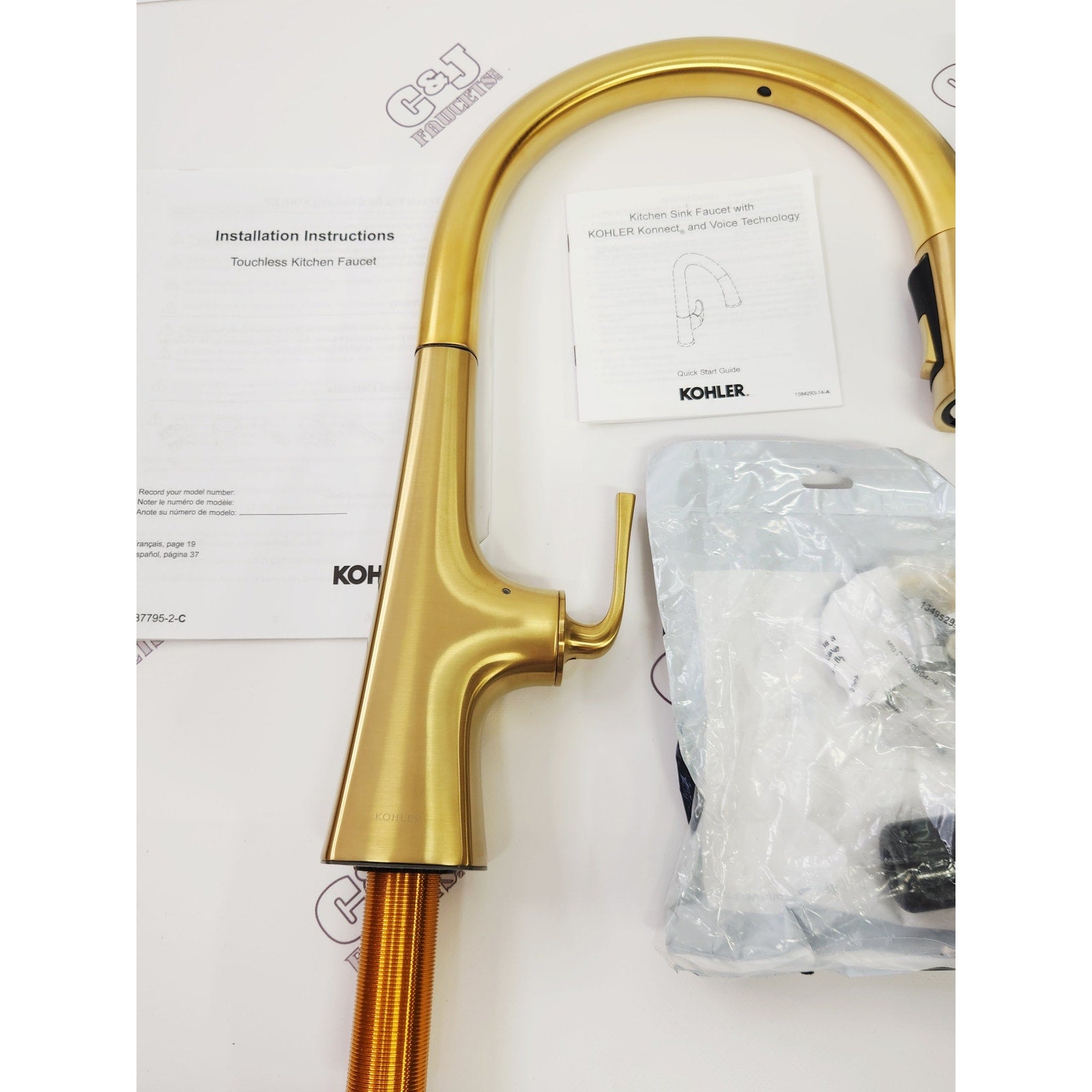 Kohler 22068-WB-2MB Graze Touchless Pull-Down Kitchen Faucet -Brushed Brass READ