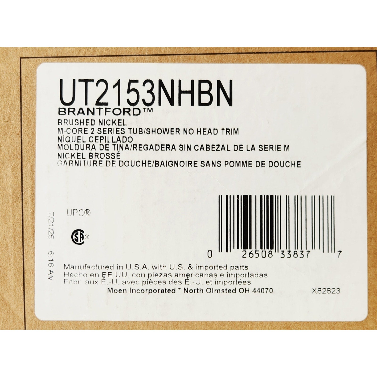 Moen UT2153NHBN Brantford M-CORE 3 1-Handle Tub and Shower Trim - Brushed Nickel