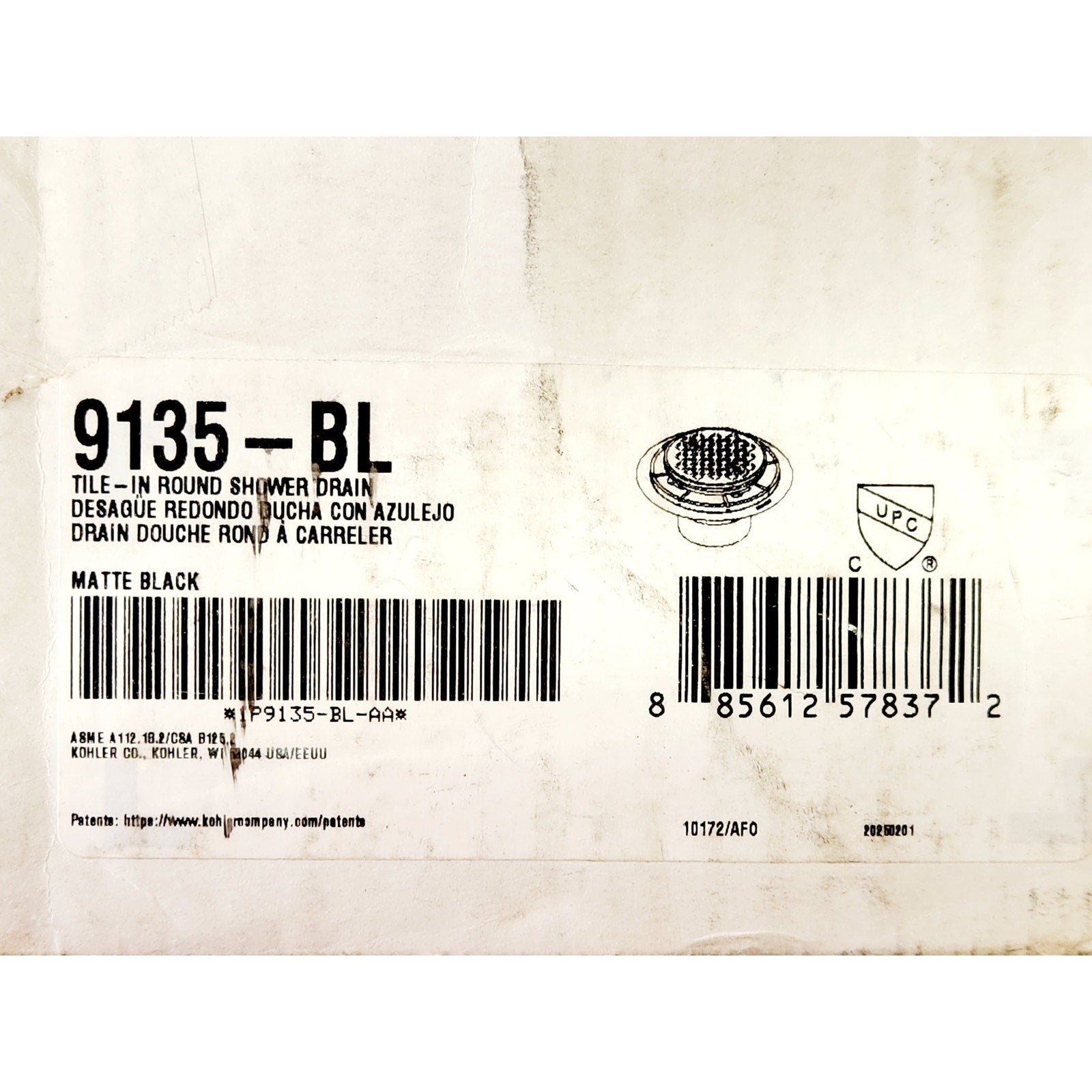 Kohler 9135-BL Clearflo Round Design Tile-In Shower Drain - Matte Black