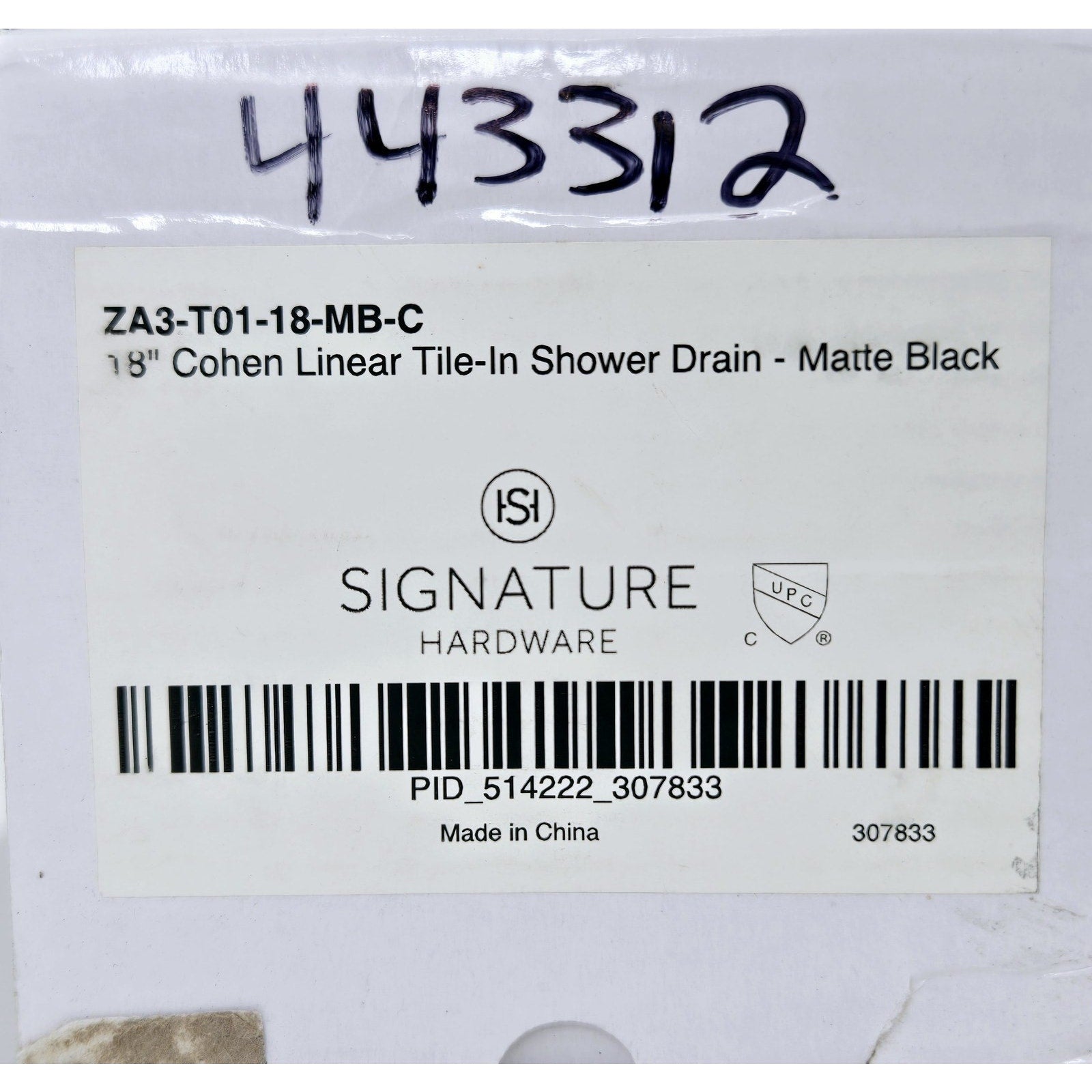 Signature Hardware 443312 18" Cohen Linear Tile-In Shower Drain - Matte Black