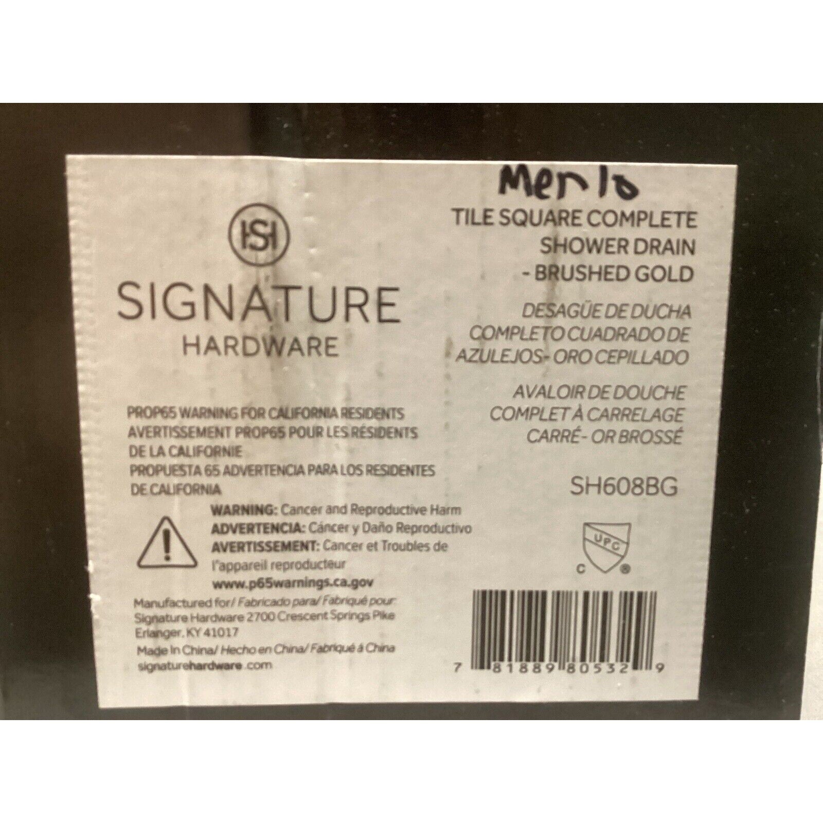Signature Hardware 478500 Menlo Square Shower Drain - Brushed Gold