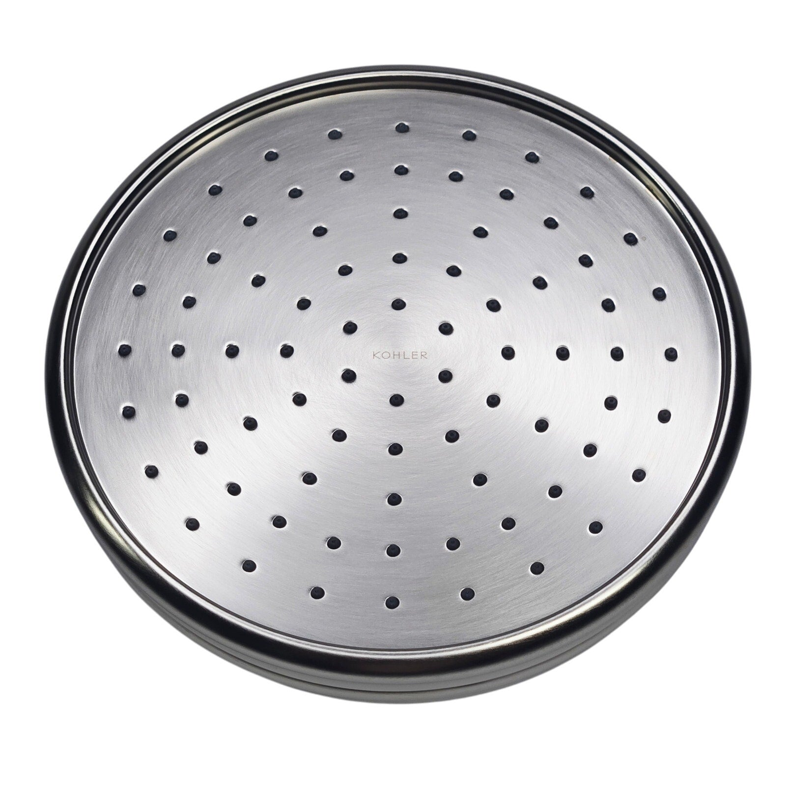Enjoy a shower that simulates the soaking deluge of a warm summer downpour. This traditional-style rainhead features innovative Katalyst air-induction technology, which efficiently mixes air and water to produce large water droplets and deliver a powerful, thoroughly drenching overhead shower experience. Its clean good looks and durable finish coordinate with many other Kohler faucets and accessories.