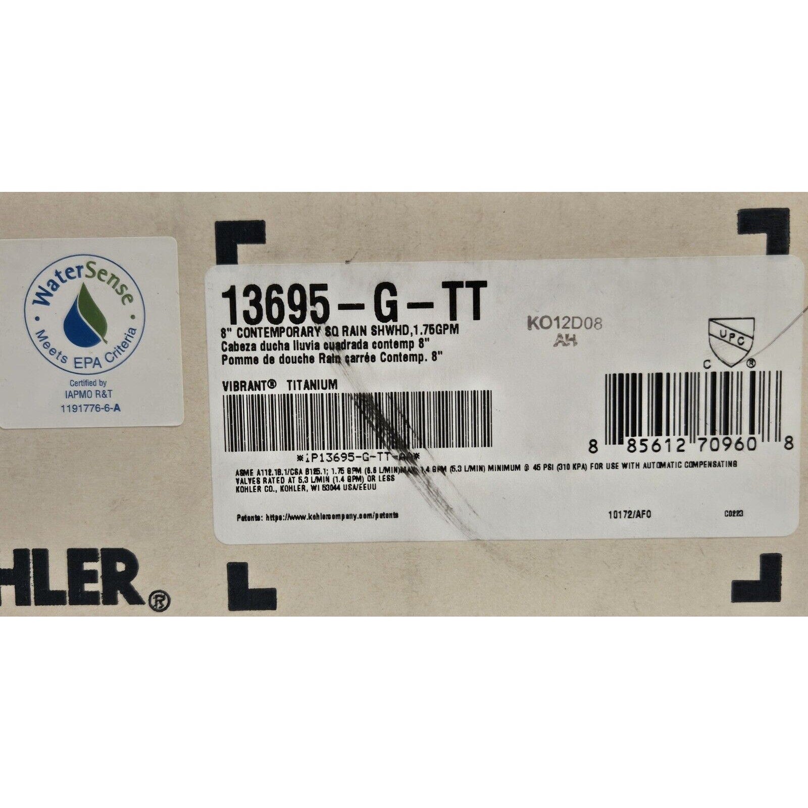 Kohler 13695-G-TT Contemporary Square 8" Rainhead, 1.75 GPM - Titanium