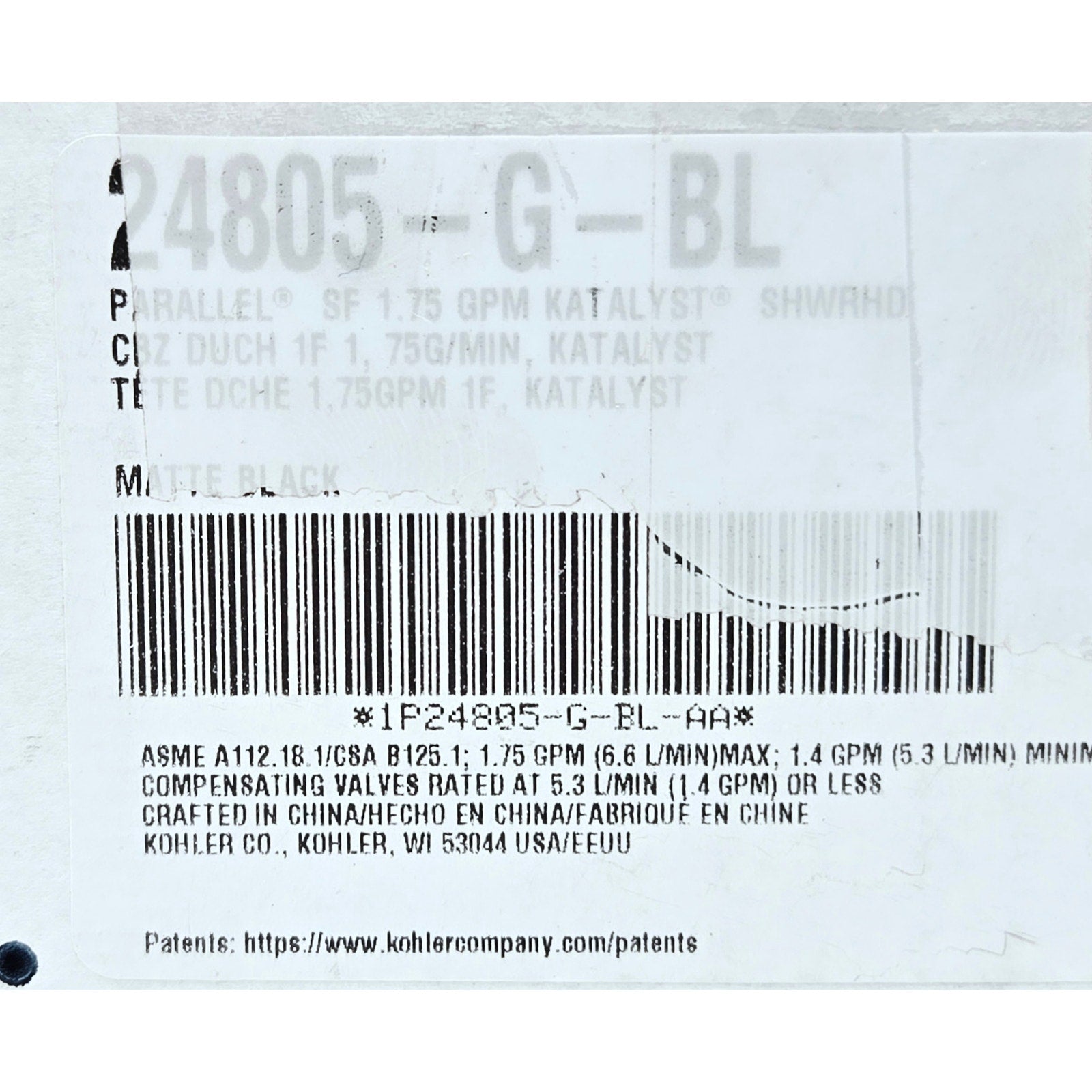 Kohler 24805-G-BL Parallel Single-Function Showerhead - Matte Black