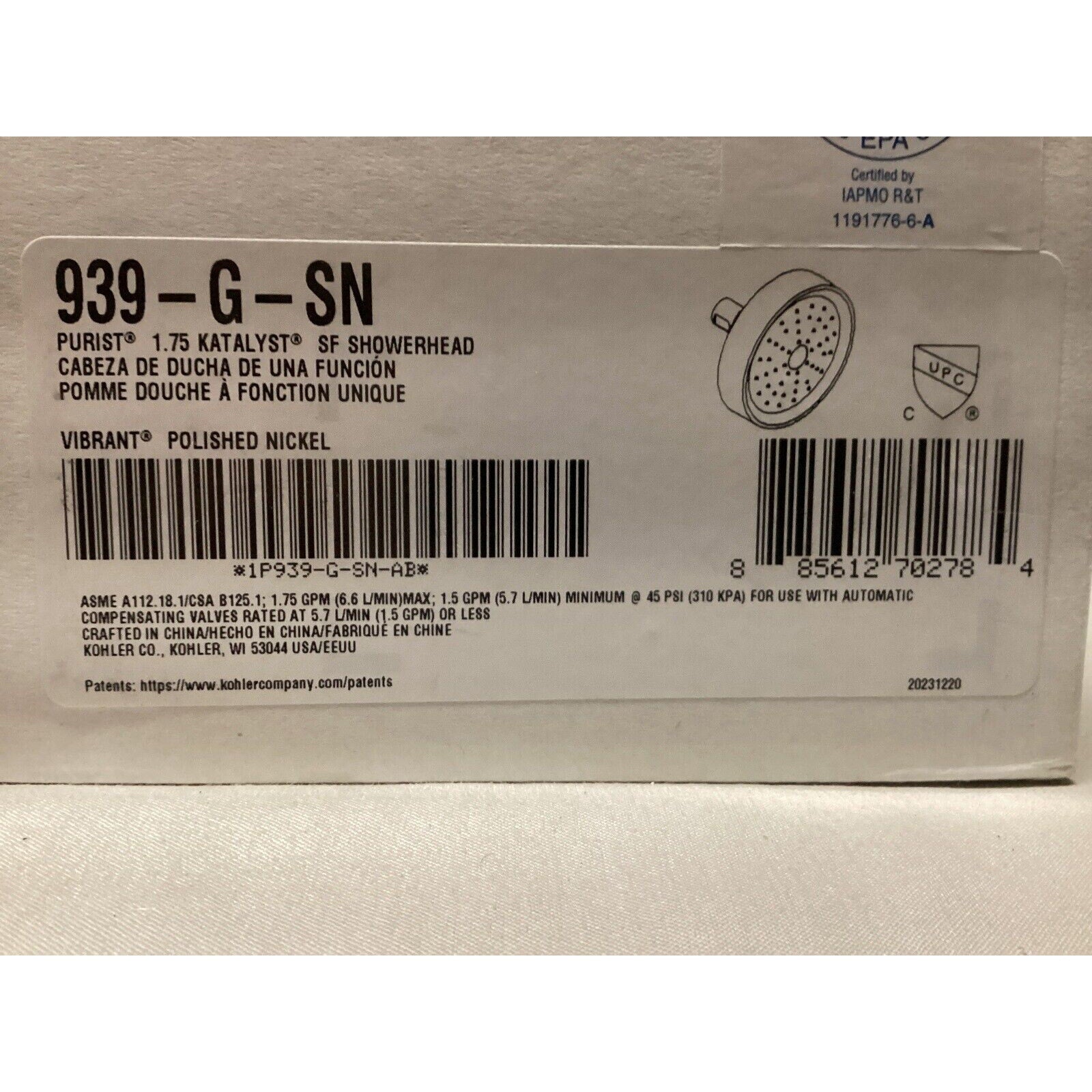 Kohler 939-G-SN Purist Single Function Shower Head, 1.75 GPM - Polished Nickel