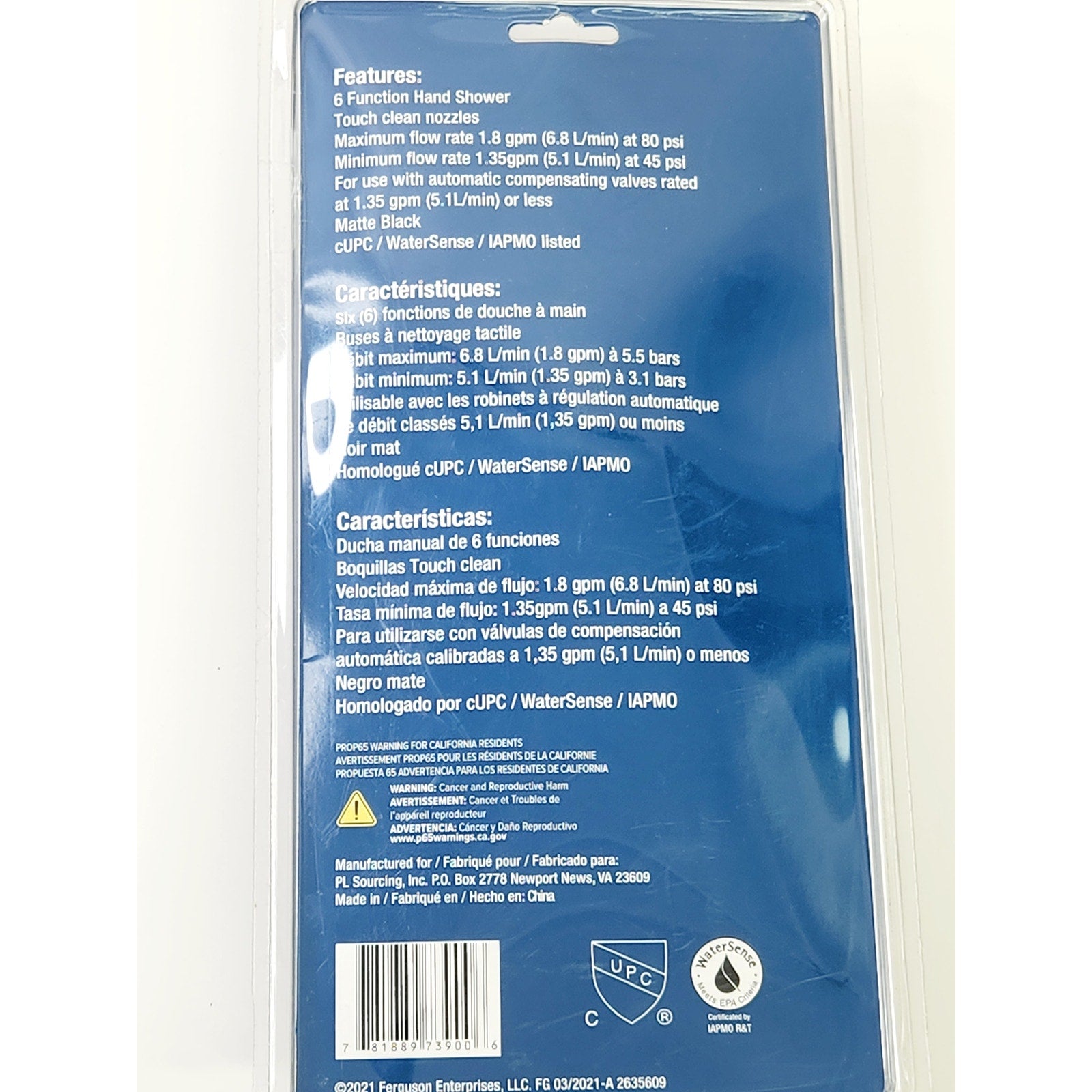 Hand shower comes equipped with 6 distinct functions PROFLO PFHS207G Specifications: Hand Shower Height: 8-15/16" (top to bottom)
