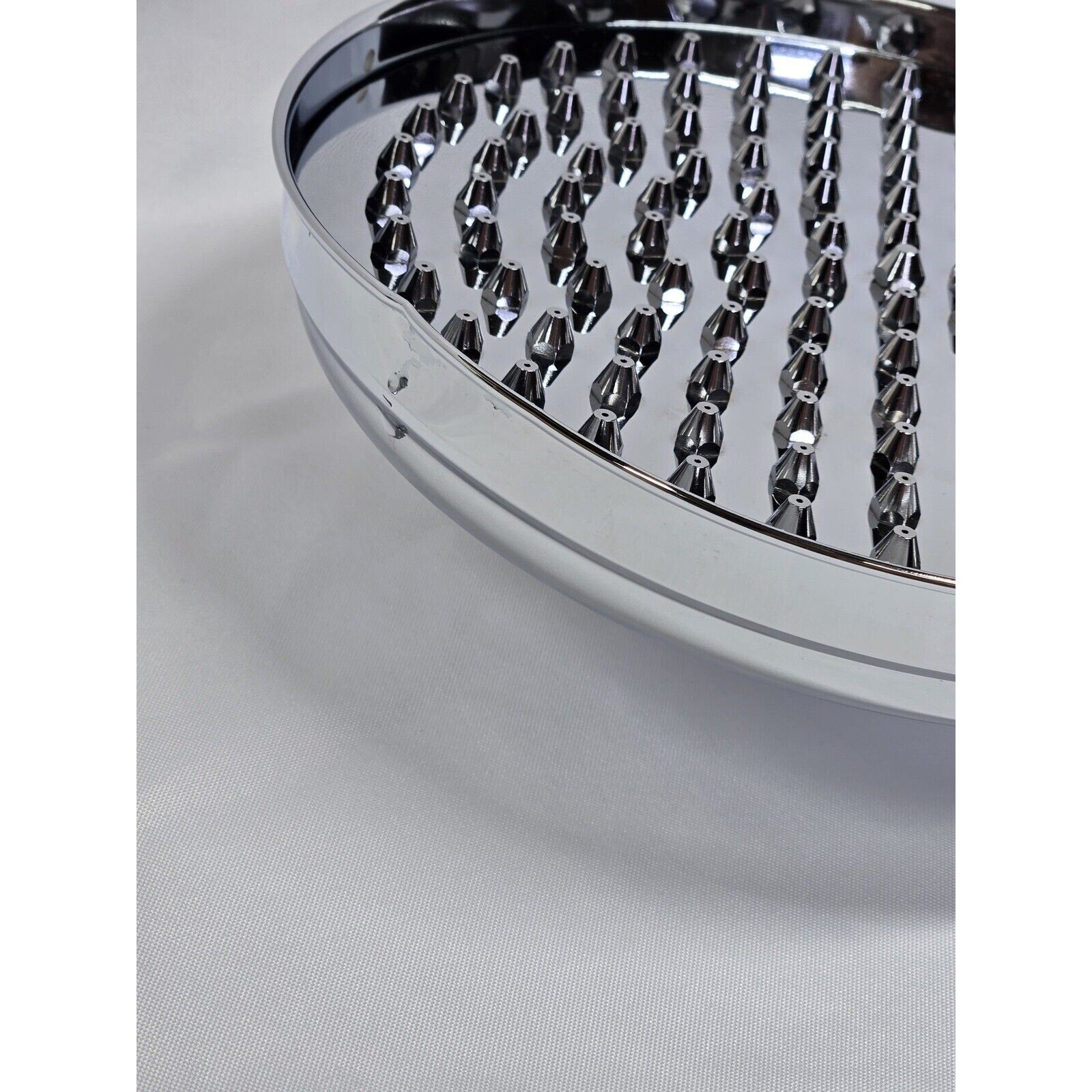 NOTE: As shown in the pictures this shower head has a dent on one side. It is still new and never used. We believe this was due to poor packaging or maybe being dropped. We have adjusted our price for this flaw. If you have any questions please message us.