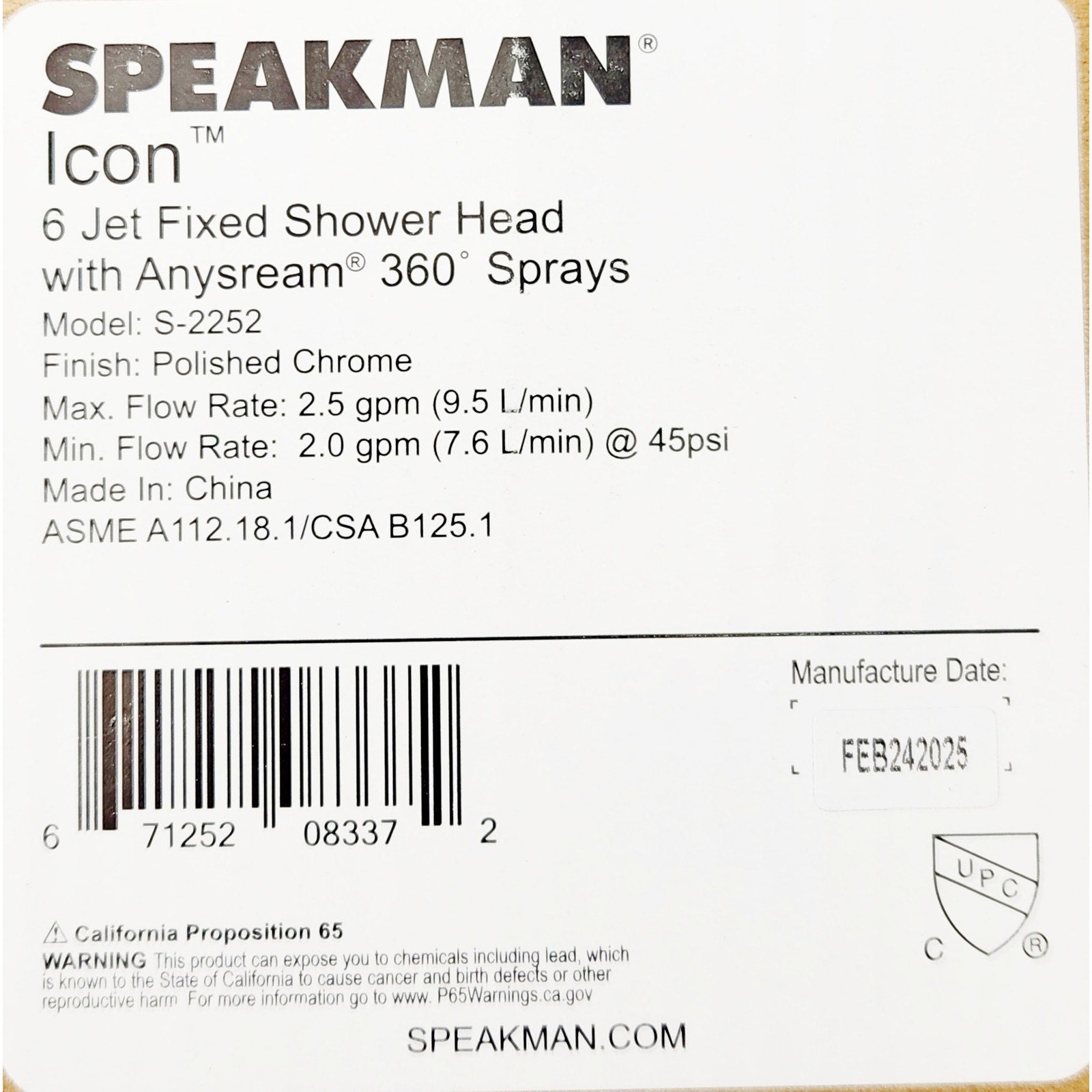 Speakman S-2252 Icon 2.5 GPM Multi Function Shower Head - Polished Chrome