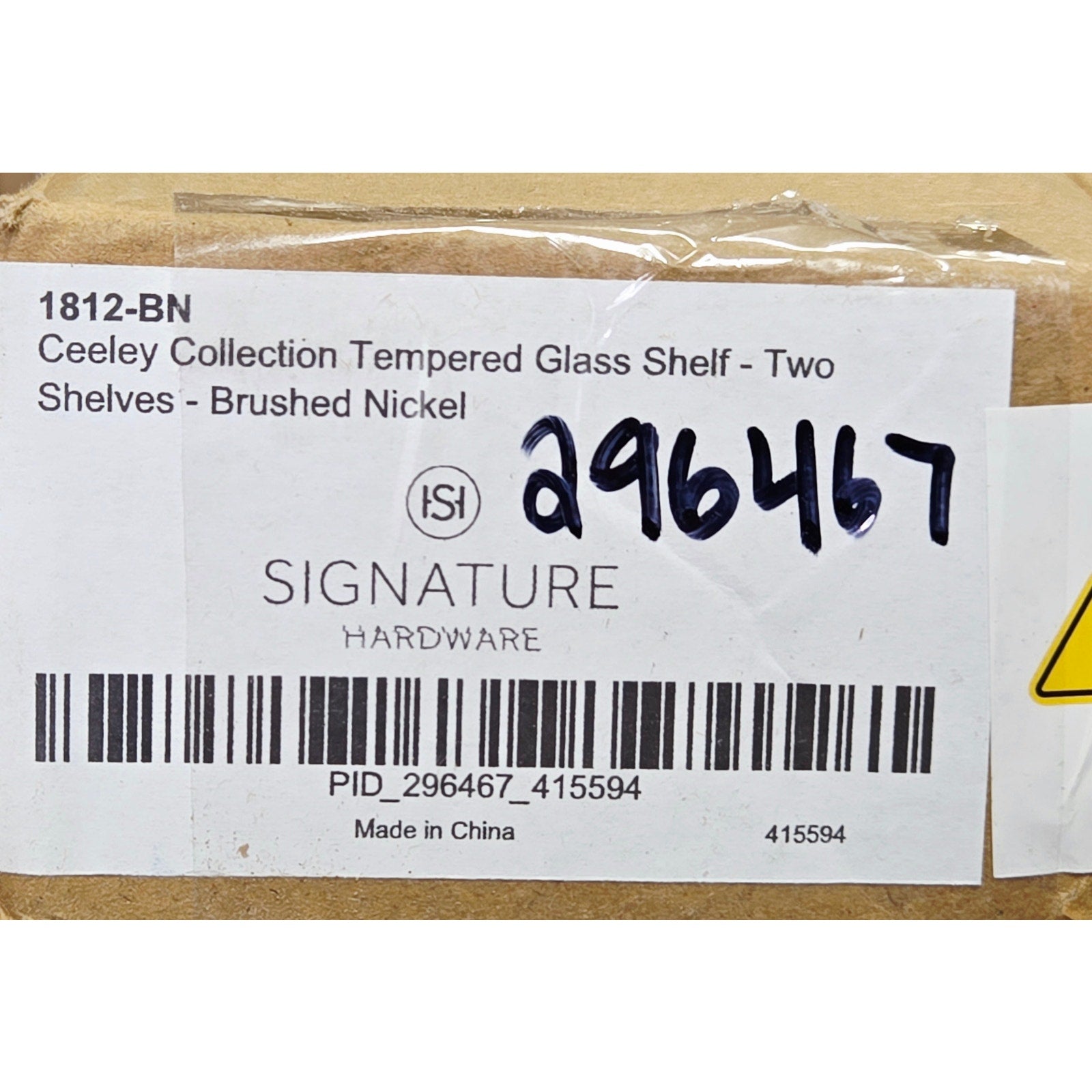 Signature Hardware 296467 Ceeley 17" Two-Tier Glass Bathroom Shelf -Brush Nickel
