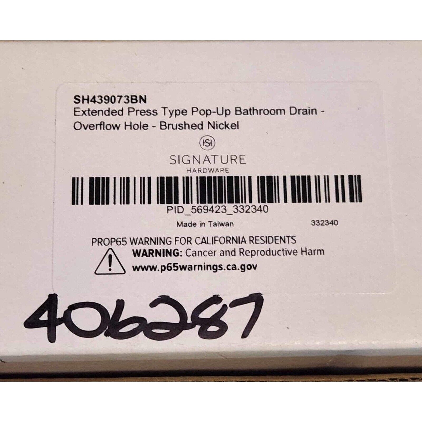 Signature Hardware 406287 Press Type Pop-Up Bathroom Drain - Brushed Nickel