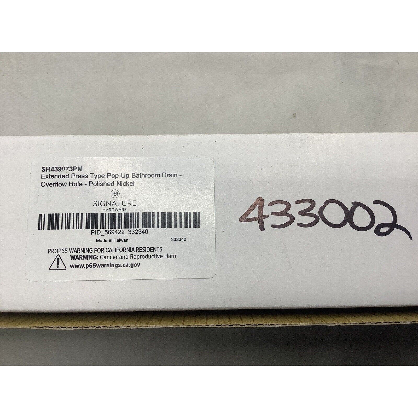 Signature Hardware 433002 Extended Pop-Up Bathroom Drain, Overflow-Polshd Nickel