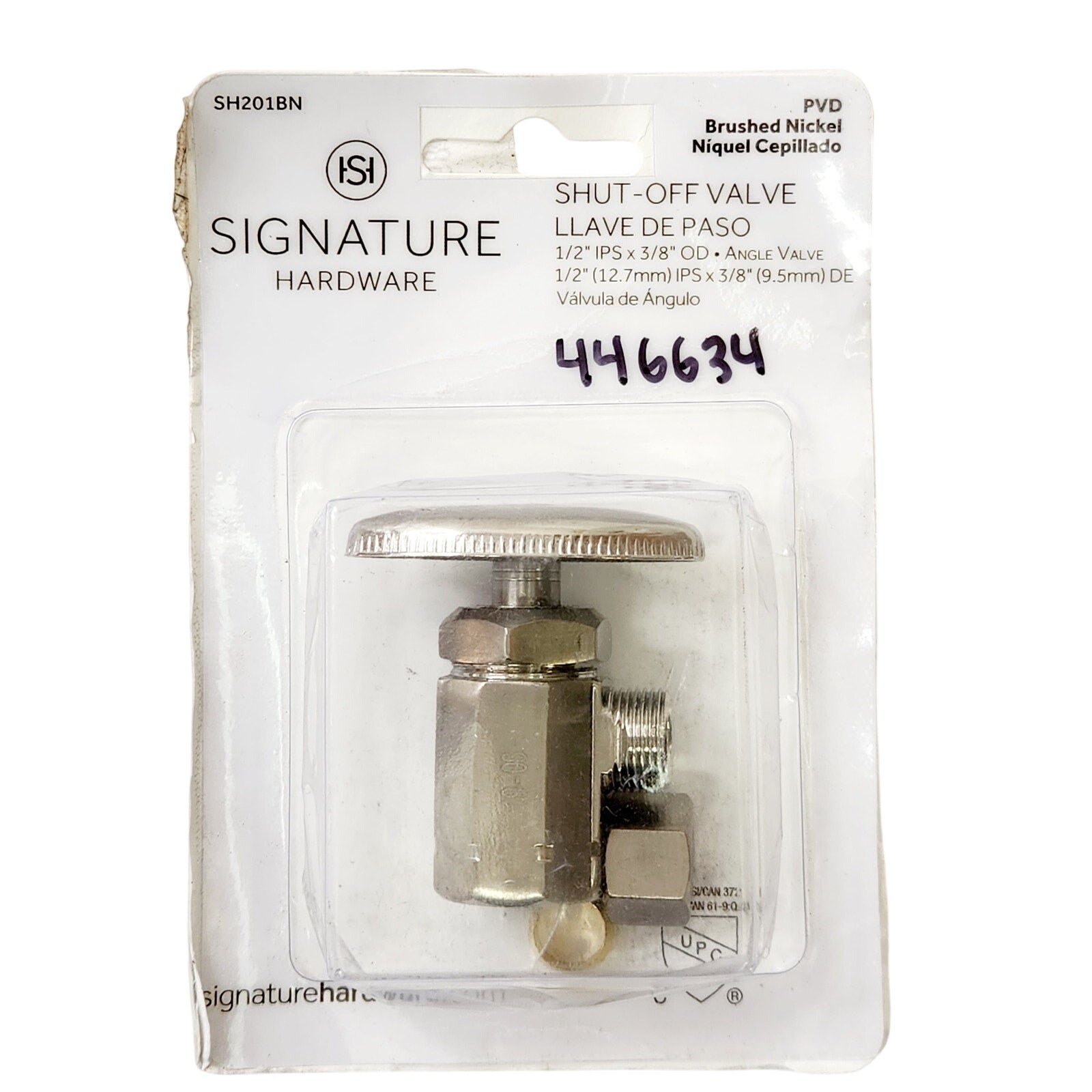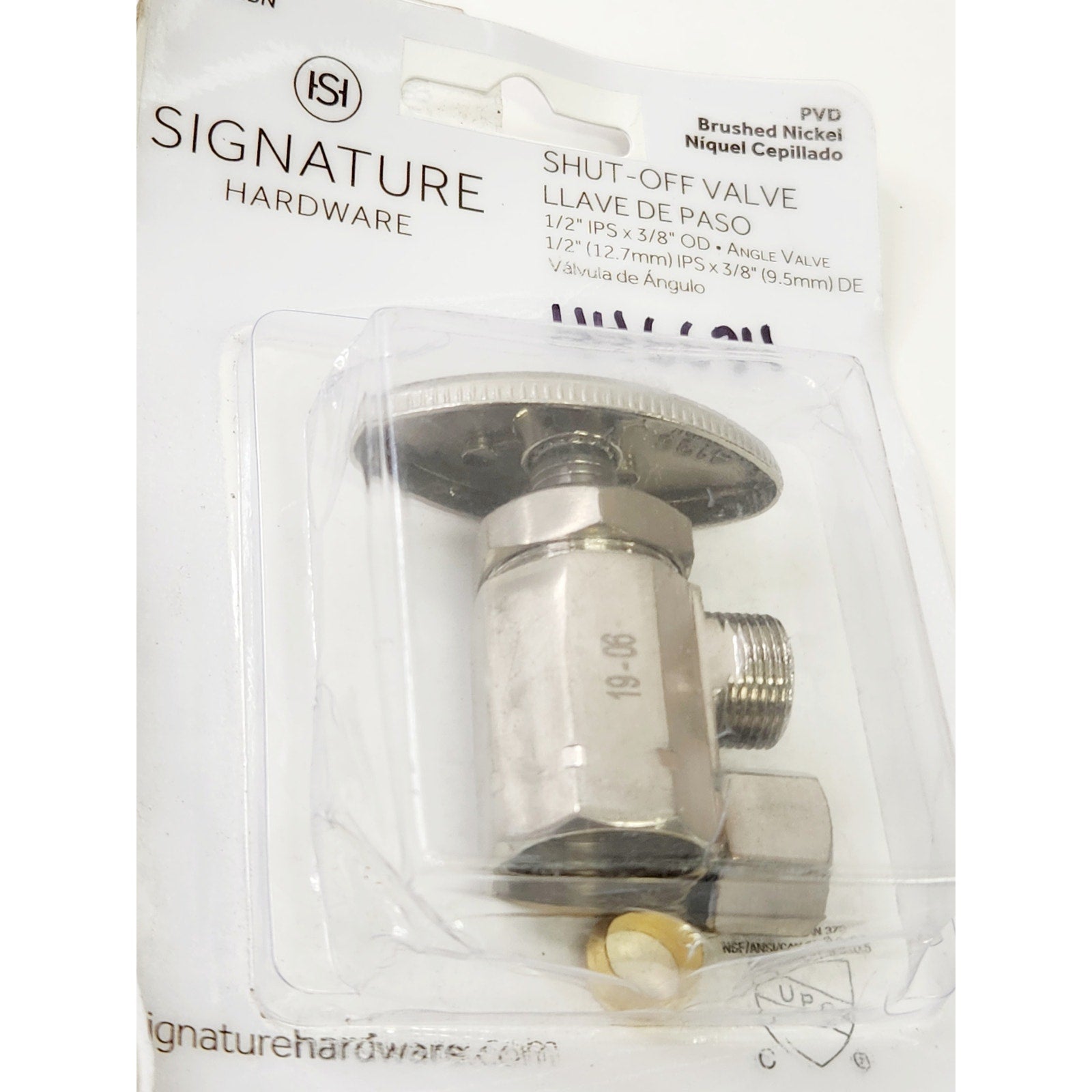 Signature Hardware 446634 1/2 x 3/8 in. Angle Supply Stop Valve - Brushed Nickel