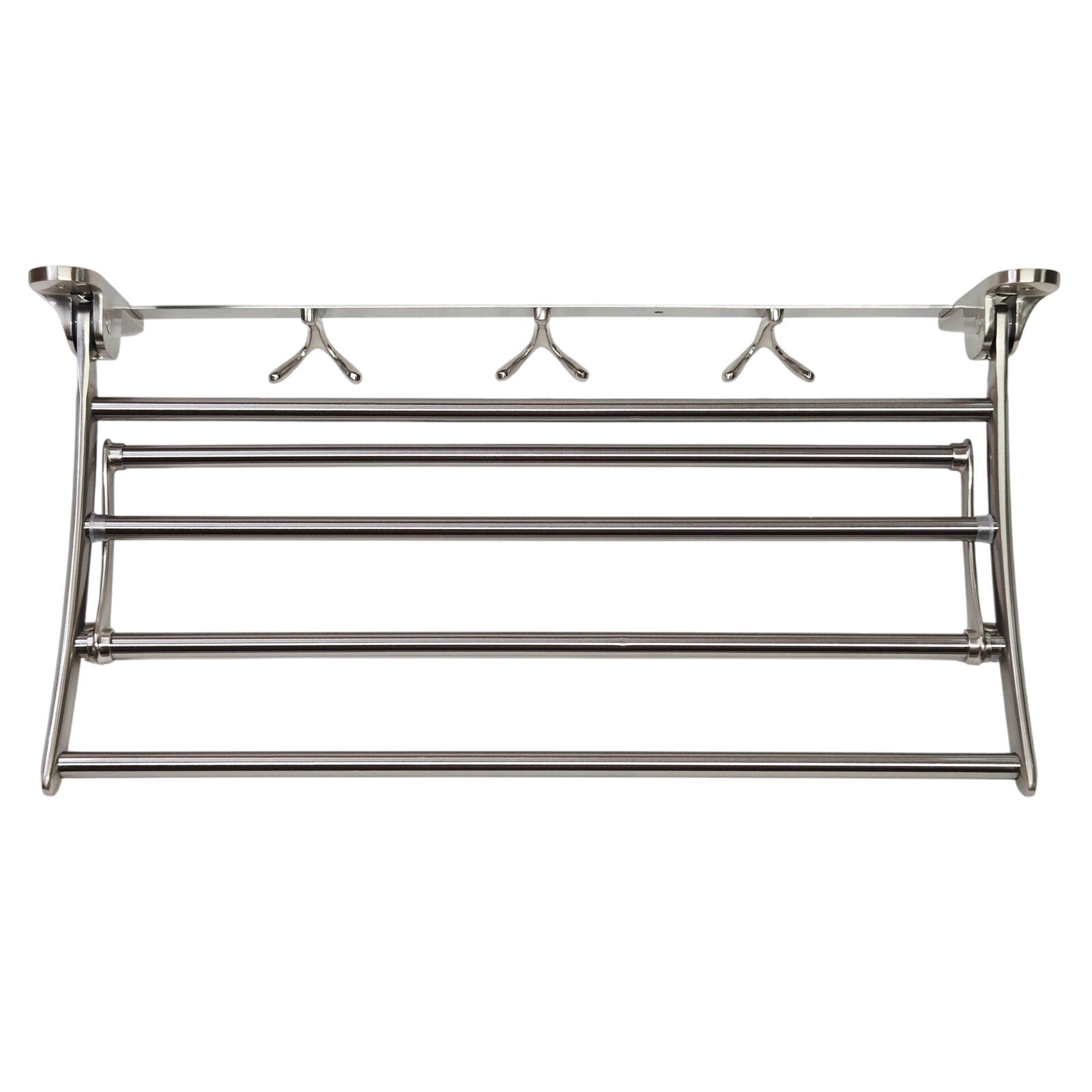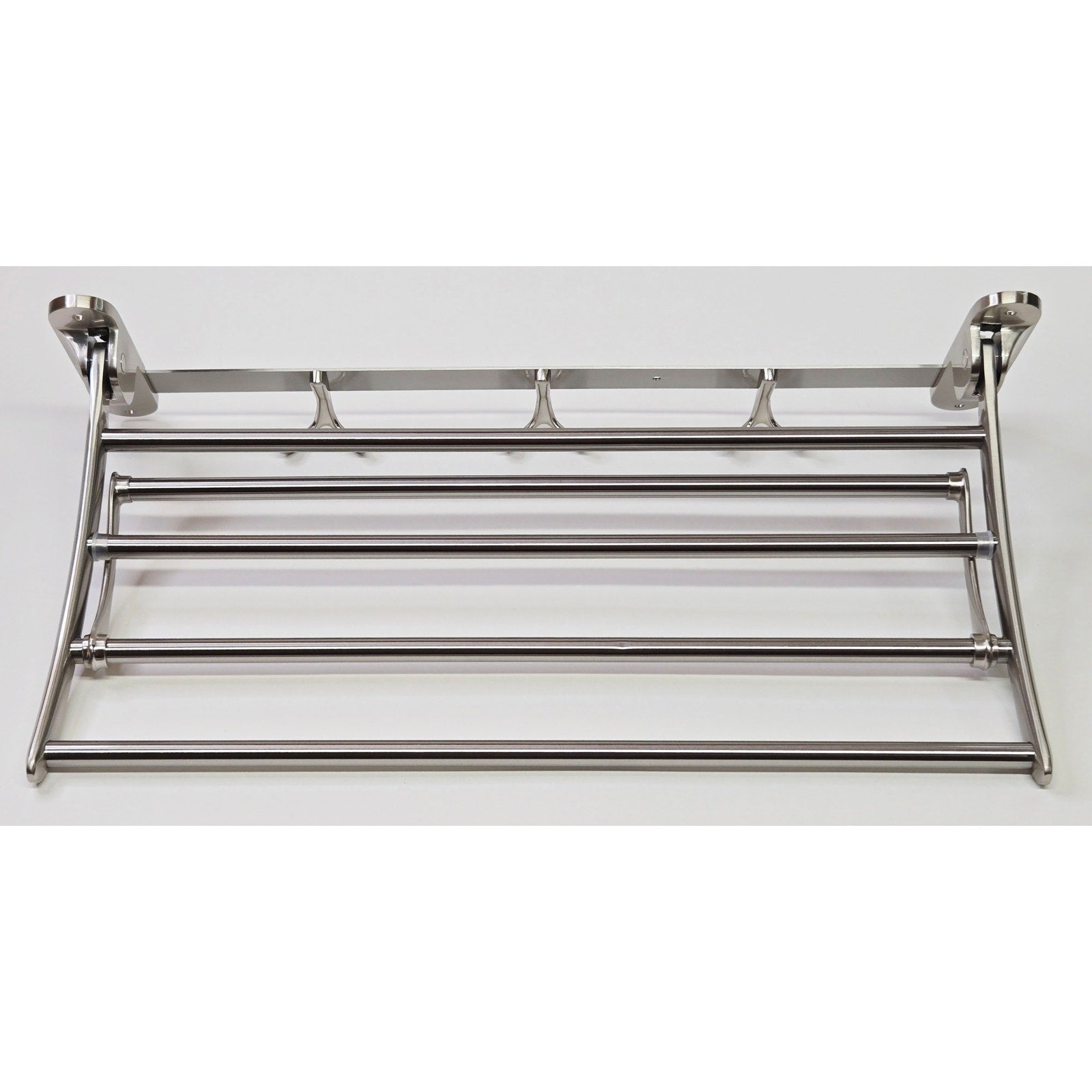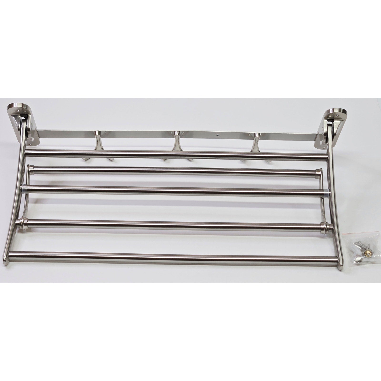 This towel rack features an additional fold-down bar and the entire rack can fold-up for convenient storage. Add storage, space and beauty with this solid brass towel rack.