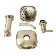 Box includes: showerhead, shower arm and flange, faceplate with lever handle, diverter spout with 1/2 in. NPT or slip-fit connection, and Rite-Temp pressure-balancing valve with universal 1/2 in. NPT male connections