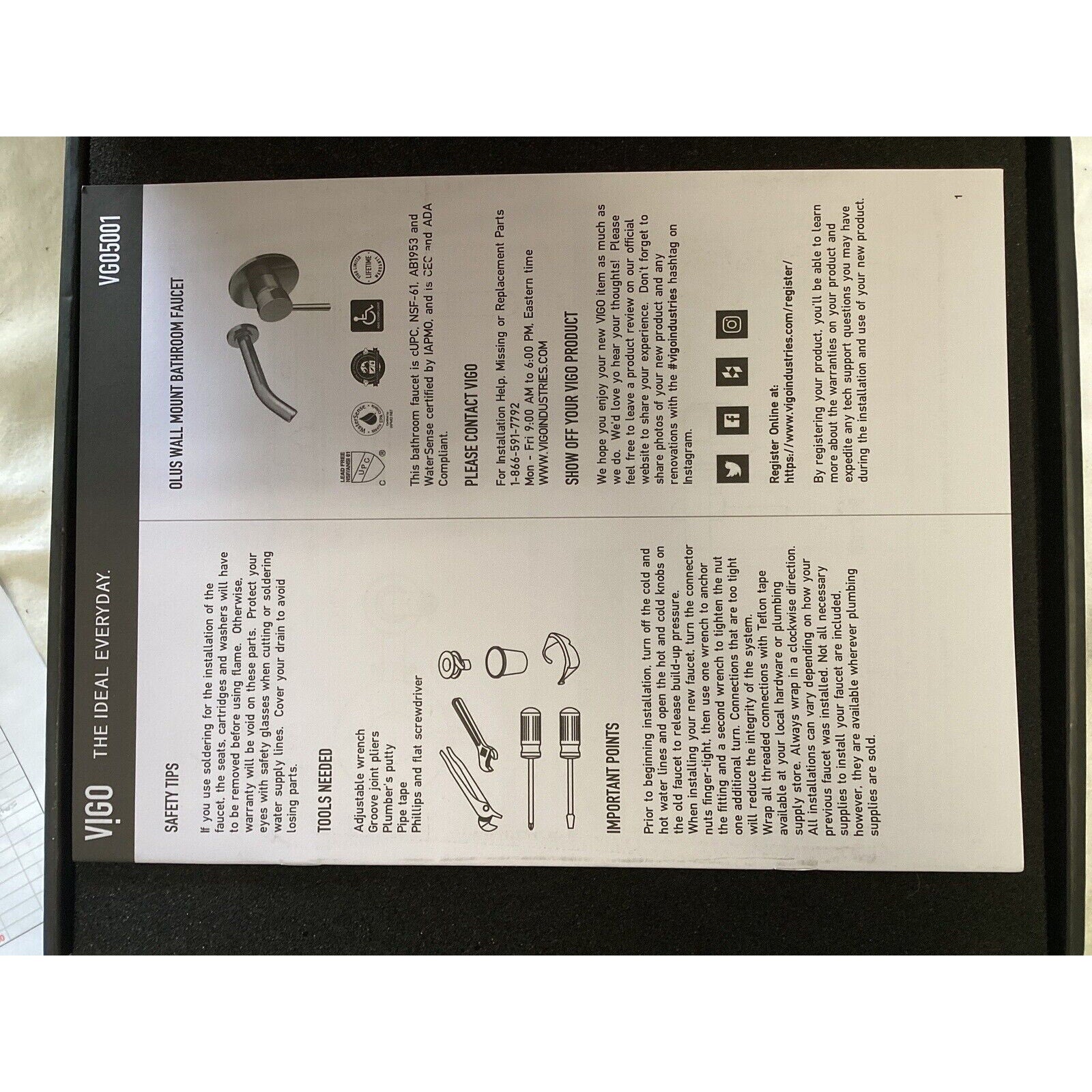 Vigo VG05001MG Olus Wall Mount Bathroom Faucet with Rough In - Matte Gold