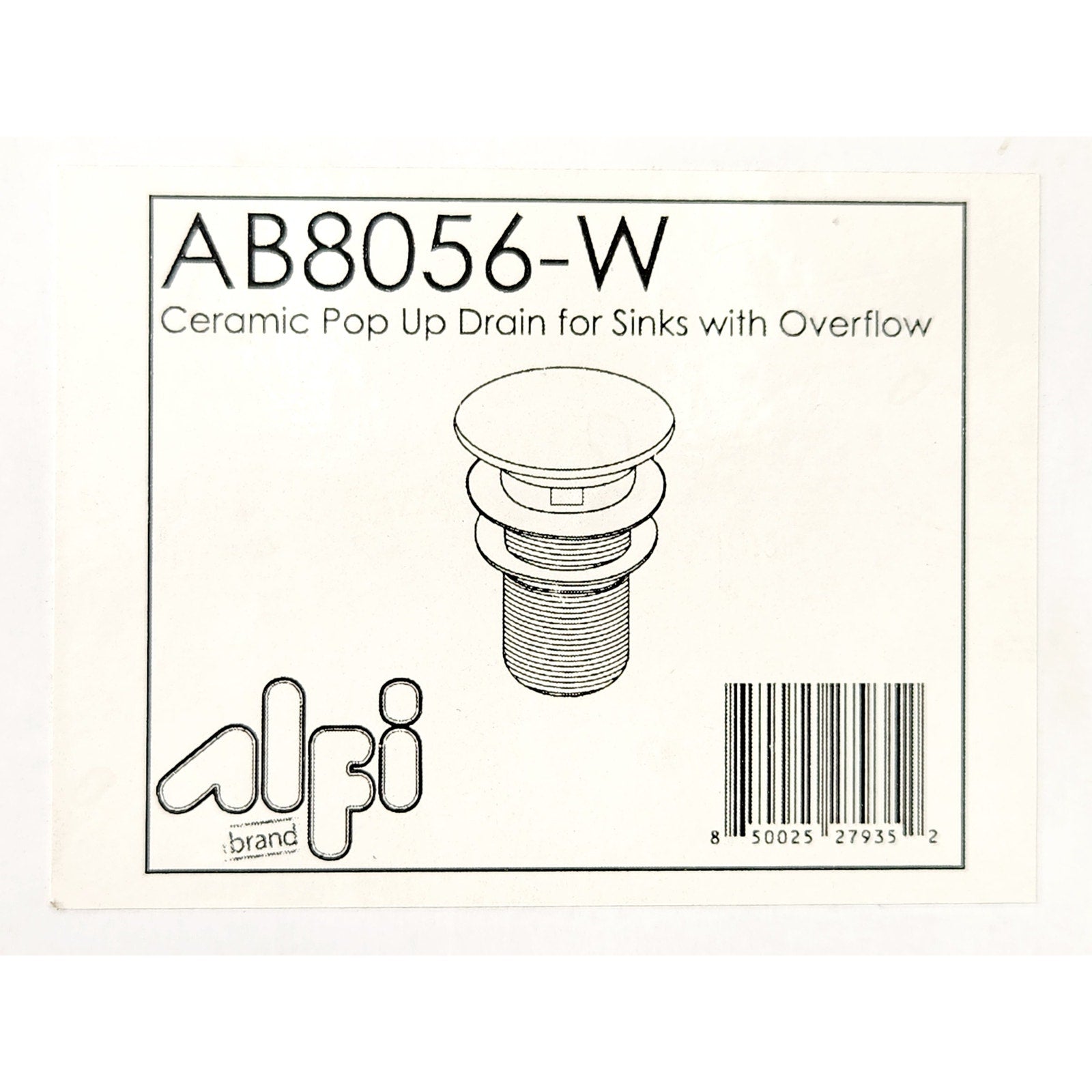 ALFI AB8056-W Ceramic Mushroom Top Pop Up Drain for Sinks with Overflow - White