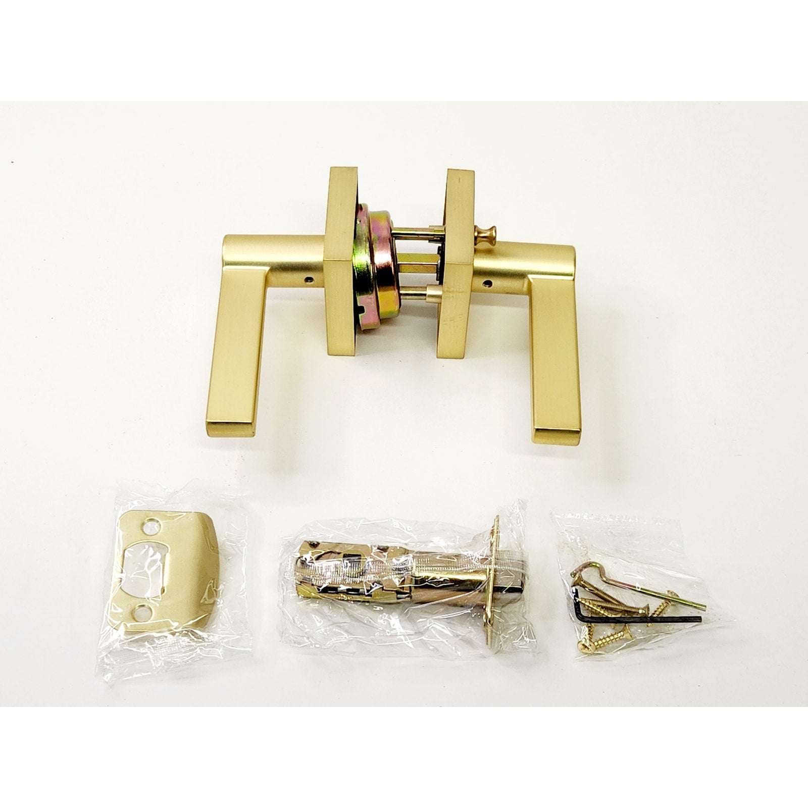 Miseno MLK3022SB Lorton Flat Bar Privacy Door Lever Set - Satin Brass