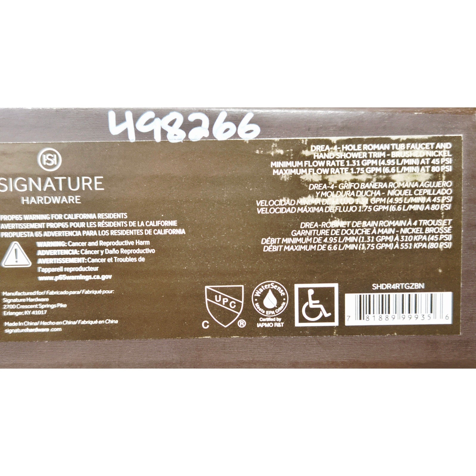 Hand Shower Flow Rate: 1.75 gallons-per-minute